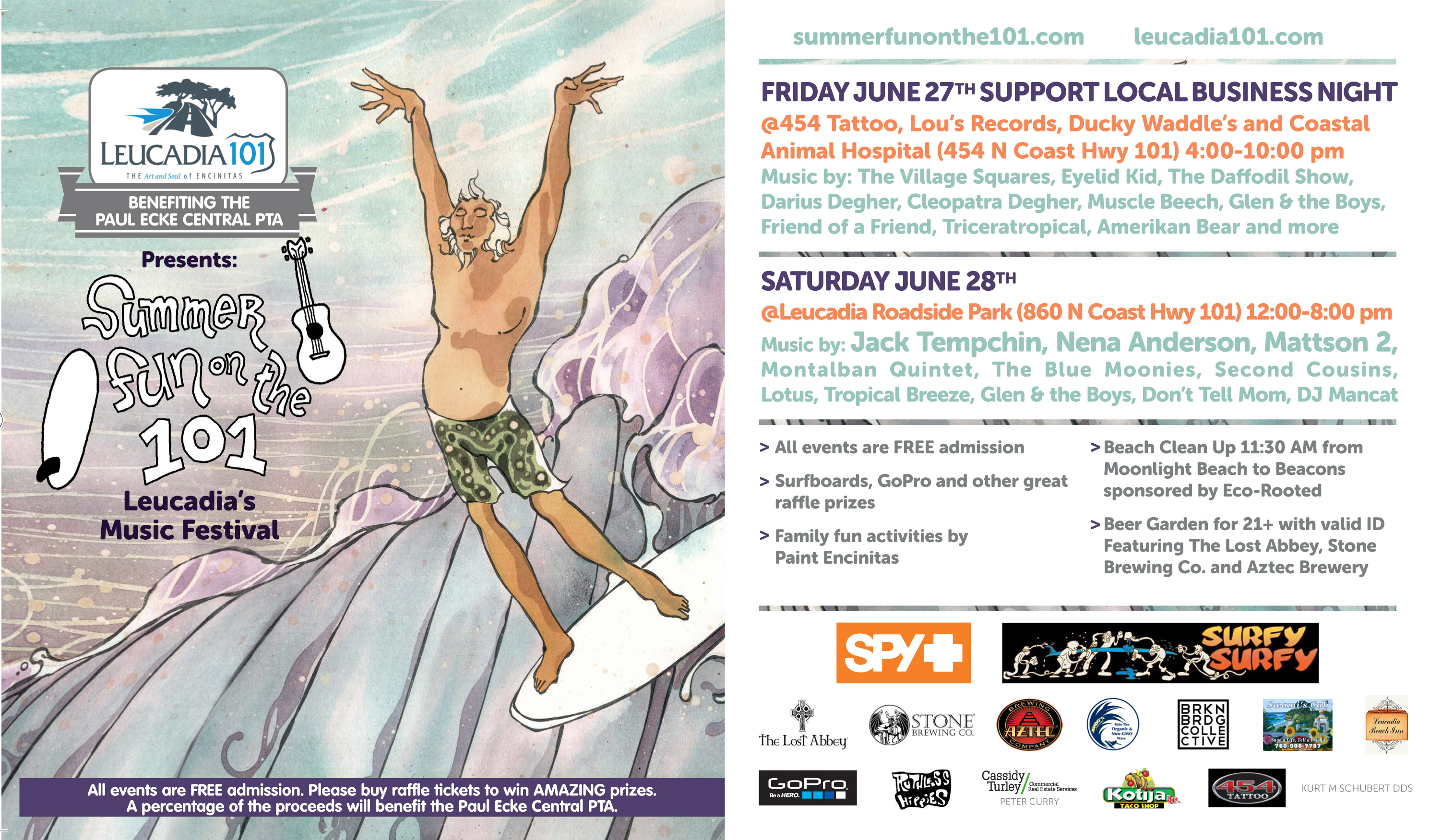 We are so thoroughly stoked for this year’s festivities. The Mattson 2 is back! We’ve got Jack Tempchin, Nena Anderson, Montalban Quintet and so many more great bands ready to rock Leucadia. Click the schedule tab to check out more of these awesome acts